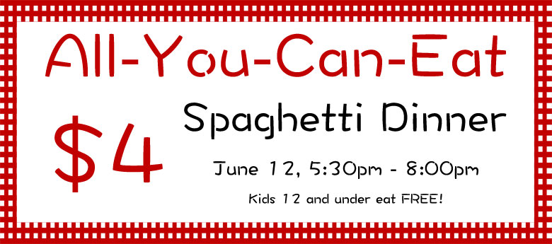 Help the teens of our church earn their way to camp! All-You-Can-Eat spaghetti for $4! Kids 12 and under eat free! Buy your tickets at the door! Please RSVP today!
