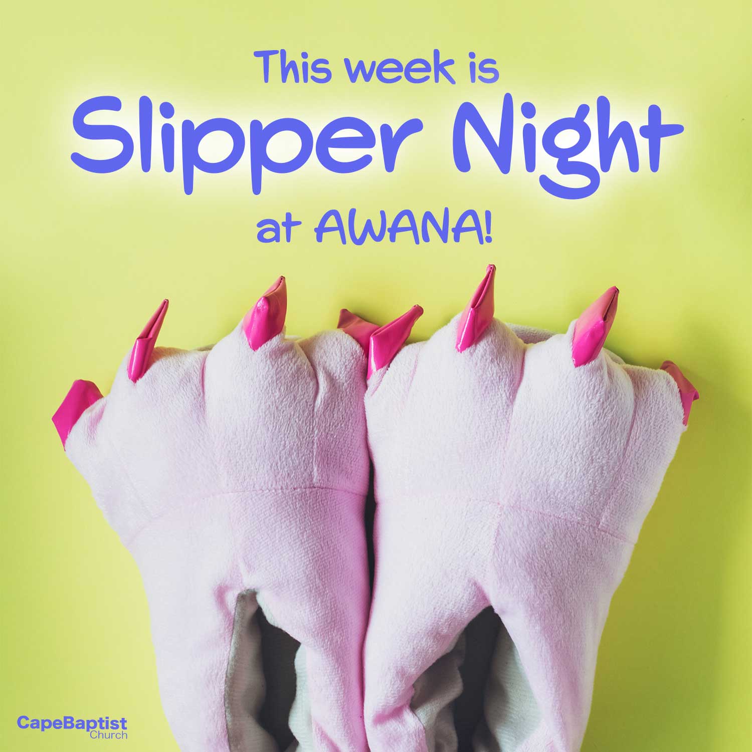 This Thursday is Slipper Night at AWANA! Join us for some silly fun as we encourage everyone to wear their favorite pair of slippers to our club night! Extra points will be awarded to all who participate, and you never know…there may be a prize for the best slippers that walk in the door! See you this Thursday, February 19th, at 6:30pm!