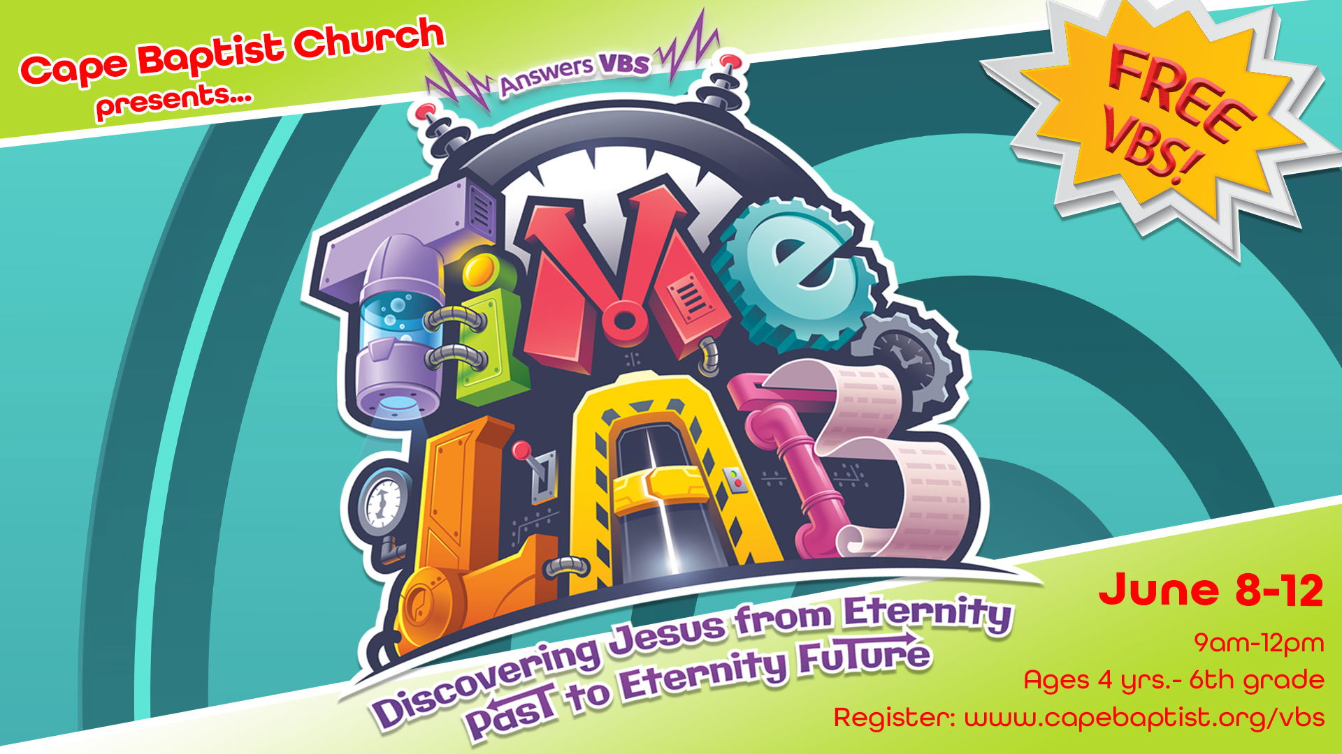 Get ready to launch into hyperdrive at Time Lab Vacation Bible School! We’ll discover Jesus from eternity past to eternity future, and we’ll meet some pretty cool other people along the way! Your children will enjoy a week packed with fun – science experiments, games, songs, prizes, puppet shows, crafts, snacks, Bible lessons, and so much more! Don’t wait – register today!